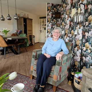 Na 57 jaar in een eengezinswoning te hebben gewoond is mevrouw de Bruin een paar maanden geleden verhuisd naar een gelijkvloers appartement in Oudorp. Spijt van de verhuizing heeft mevrouw De Bruin totaal niet. “Ik vind het hier fantastisch en hoop dat ik hier nog heel lang mag genieten.”
