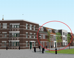 De 14 sociale huurappartementen bestaan uit 10 driekamerwoningen en 4 tweekamerwoningen. Het worden Nul-op-de-meter (NOM)- woningen, die door middel van zonnepanelen in de eigen energiebehoefte voorzien. De appartementen hebben een terras of loggia (inpandig balkon) als buitenruimte. (zie rode cirkel in de afbeelding voor de locatie van de 14 sociale huurappartementen).