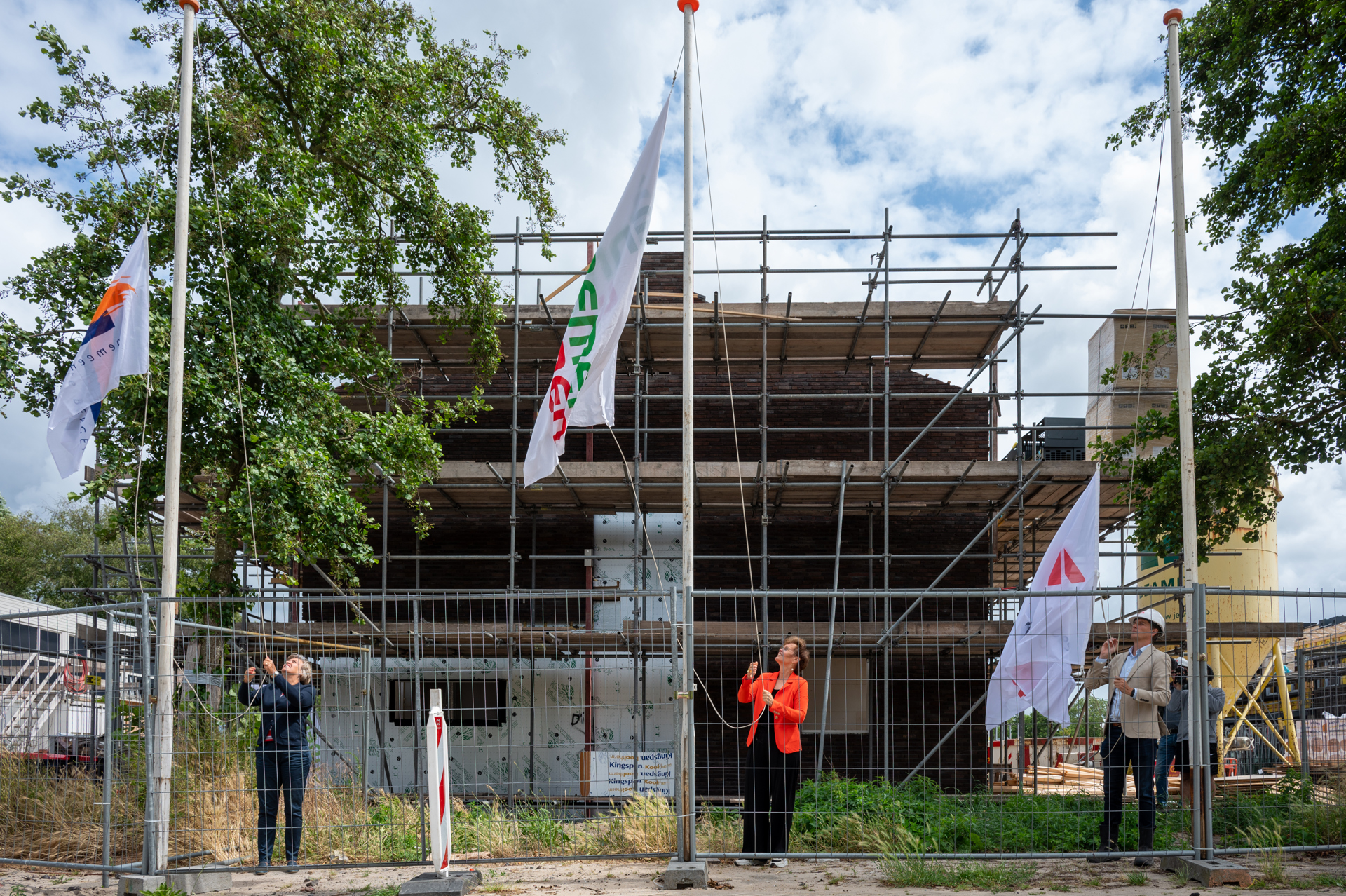 Krista Walter: “De woningnood is hoog. Gemeente en wooncorporatie hebben samen een belangrijke maatschappelijke opgave. We moeten veel meer sociale huurwoningen toevoegen. Daar zetten we ons dagelijks voor in! Mooi dat vandaag de vlaggen zijn gehesen op deze mooie locatie. Het hoogste punt is hier nu bereikt. Daarmee komt de oplevering van zestien woningen dichterbij. Woningen die hard nodig zijn voor bewoners die willen doorstromen en/of nieuwe woningzoekenden.”