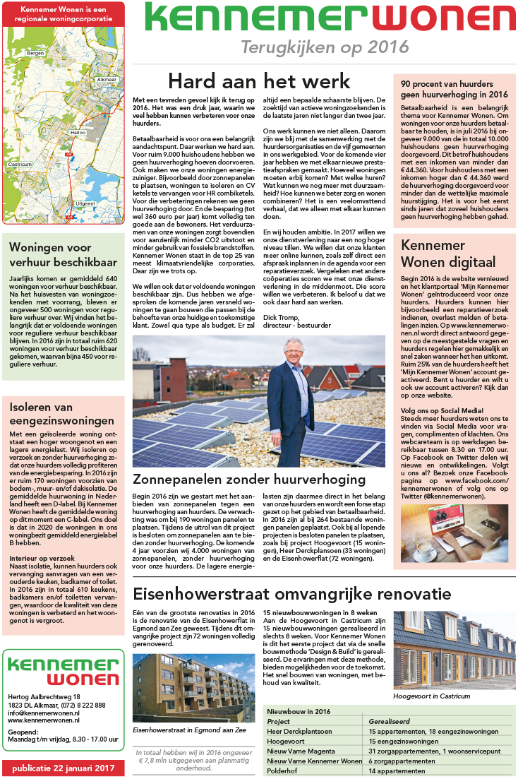 Zondag 22 januari blikten we terug op 2016 met een pagina in de huis-aan-huisbladen Alkmaar op Zondag en Kennemerland op Zondag. Bekijk hier de terugblik.